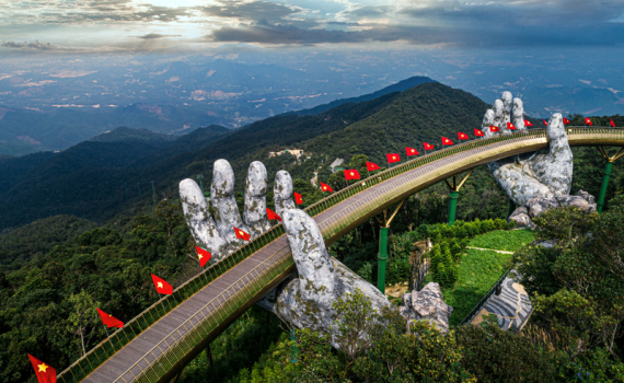 Nằm trong khu du lịch Sun World Ba Na Hills (Đà Nẵng), cây Cầu Vàng ngay từ khi vừa xuất hiện đã trở thành “hiện tượng” trên mạng xã hội như Instagram, Facebook, Tiktok,…..trở thành điểm nên đến và phải đến của bất cứ du khách nào khi tới Việt Nam.
