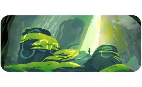 Doodle tái hiện khung cảnh hố sụt khổng lồ nằm sâu hơn trong hang Sơn Đoòng, với ánh nắng chiếu rọi làm sáng bừng khung cảnh hang với nhiều sắc thái xanh của núi rừng.