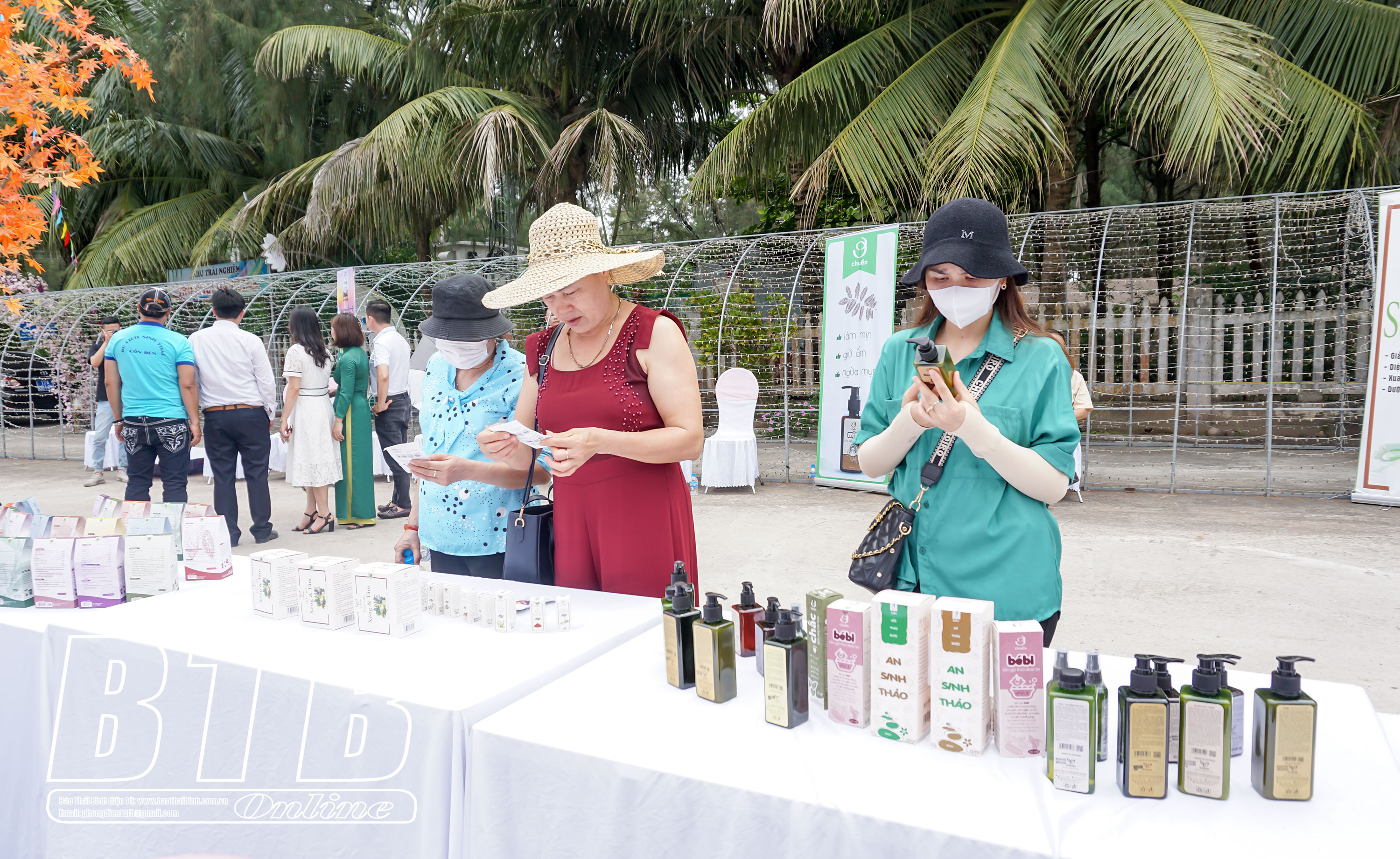 Là điểm nhấn trong chuỗi hoạt động du lịch hè 2022, trước kỳ nghỉ lễ 30/4 - 1/5, khu trưng bày, giới thiệu sản phẩm OCOP tại khu du lịch sinh thái cồn Đen, xã Thái Đô (Thái Thụy) đã được khai trương với khoảng 200 loại sản phẩm là nông sản, hải sản, thảo dược, đặc sản vùng miền không chỉ của các địa phương trong tỉnh mà còn đến từ các tỉnh, thành phố trong cả nước. Các gian hàng được bố trí ngay trên trục đường chính của khu du lịch nên rất thuận tiện cho việc quảng bá, giới thiệu sản phẩm tới du khách.
