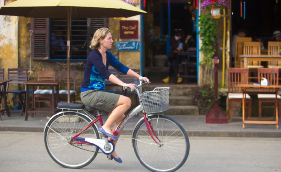 Du khách đạp xe tại phố cổ Hội An dịp tết Quý Mão.