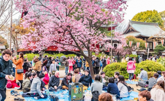 Người dân và du khách tham gia hoạt động ngắm hoa anh đào nở ở Nhật Bản.