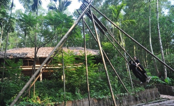 Một góc xanh mát trong Khu bảo tồn Làng nhà sàn Dân tộc sinh thái Thái Hải.