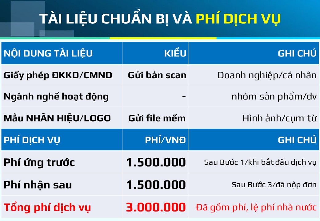 Với phí 3.000.000đ này, đã bao gồm việc hỗ trợ tra cứu, soạn hồ sơ, đại diện nộp hồ sơ và theo dõi đơn trong suốt quá trình từ đăng ký cho đến khi văn bằng được cấp.