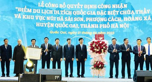 Phát biểu tại buổi lễ, Phó Chủ tịch Thường trực UBND thành phố Hà Nội Lê Hồng Sơn cho biết, việc thành phố công nhận điểm du lịch di tích quốc gia đặc biệt chùa Thầy và khu vực núi đá Sài Sơn, Phượng Cách, là cơ hội, điều kiện thuận lợi để huyện Quốc Oai tiếp tục giữ gìn, quảng bá những giá trị văn hóa quý báu tới du khách thập phương; góp phần phát triển kinh tế xã hội, xây dựng quê hương ngày càng giàu đẹp.