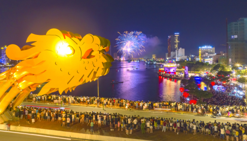 Du khách đổ xô đến cầu Rồng để xem lễ hội bắn pháo hoa ở Đà Nẵng. Ảnh: SG