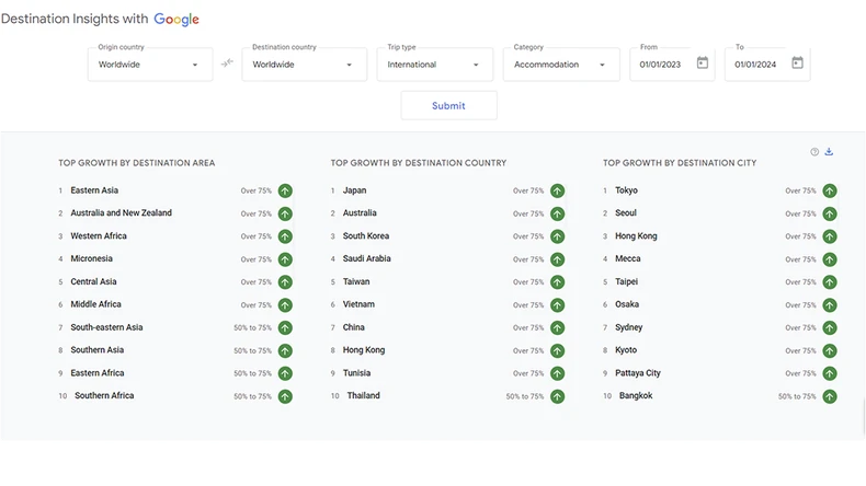 Năm 2023, lượng tìm kiếm quốc tế về Du lịch Việt Nam tăng nhanh thứ 6 thế giới