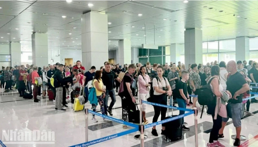 Du khách Cộng hòa Séc hạ cánh tại Sân bay quốc tế Phú Quốc hồi tháng 10/2023.