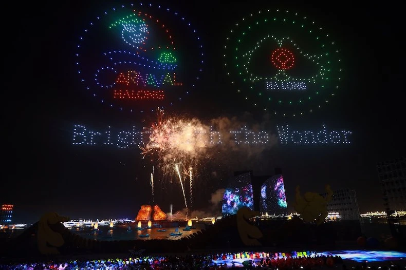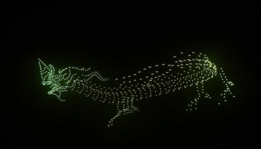 Công nghệ Drone light tái hiện biểu tượng Rồng thiêng trên Vịnh Hạ Long.