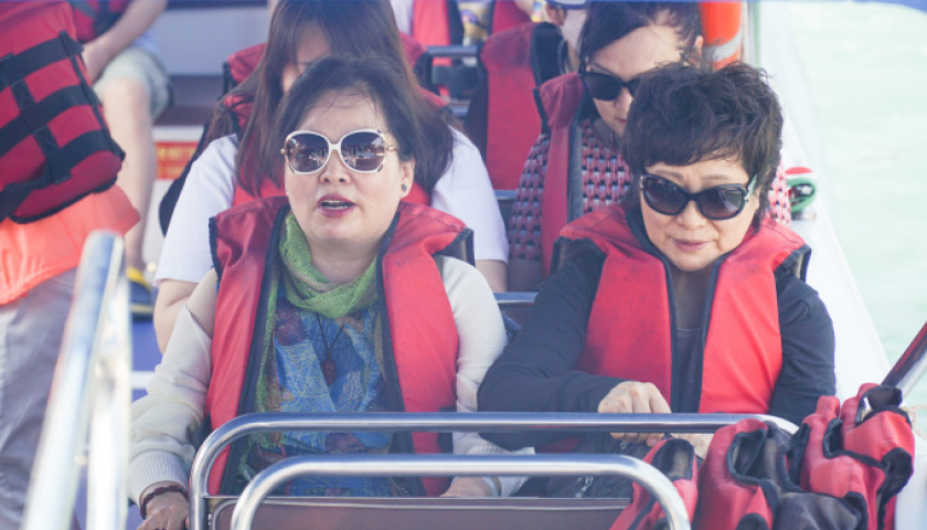 Du khách Hàn Quốc đi cano tham quan các đảo tại TP Nha Trang, Khánh Hòa dịp 30/4. Ảnh: Bùi Toàn