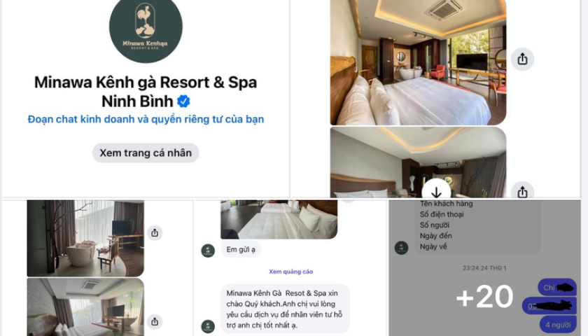 Bài đăng về thủ đoạn lừa đảo chiếm đoạt hơn 1 tỷ đồng khi đặt phòng tại fanpage mang tên "Minawa Kênh gà Resort & Spa Ninh Bình" nhận được tương tác lớn trên mạng xã hội.