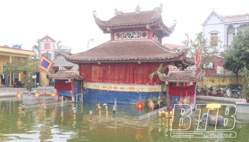 Biểu diễn múa rối nước tại phường rối nước làng Nguyễn, xã Nguyên Xá (Đông Hưng).
