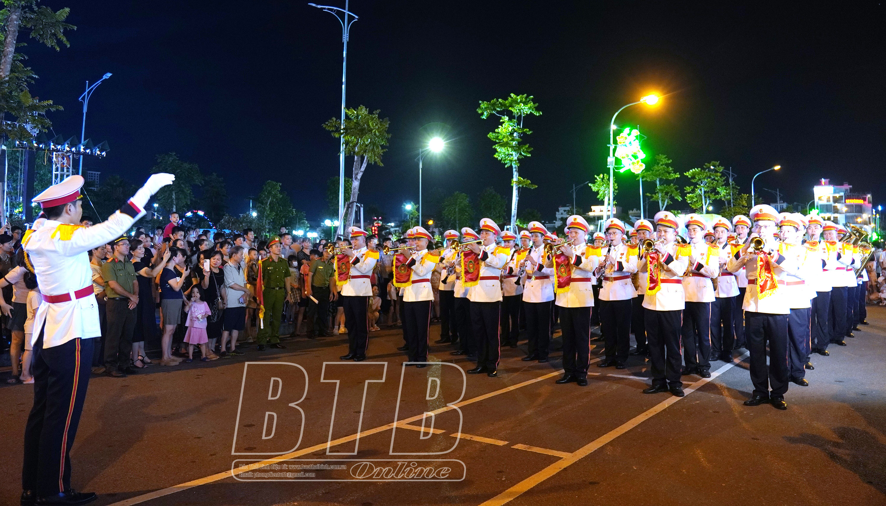 Dàn nhạc Đoàn Nghi lễ Công an nhân dân biểu diễn tại phố đi bộ thành phố Thái Bình.