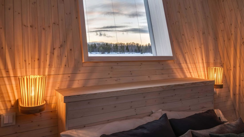 Khách sạn có sức chứa vừa đủ cho 12 vị khách. Các vị khách sẽ nghỉ lại qua đêm tại các chòi gỗ rộng 25 m2, được trang trí theo phong cách tối giản đậm chất Thụy Điển. Những chòi gỗ này cũng nổi trên mặt sông vào mùa hè và đóng băng tại chỗ vào mùa đông.