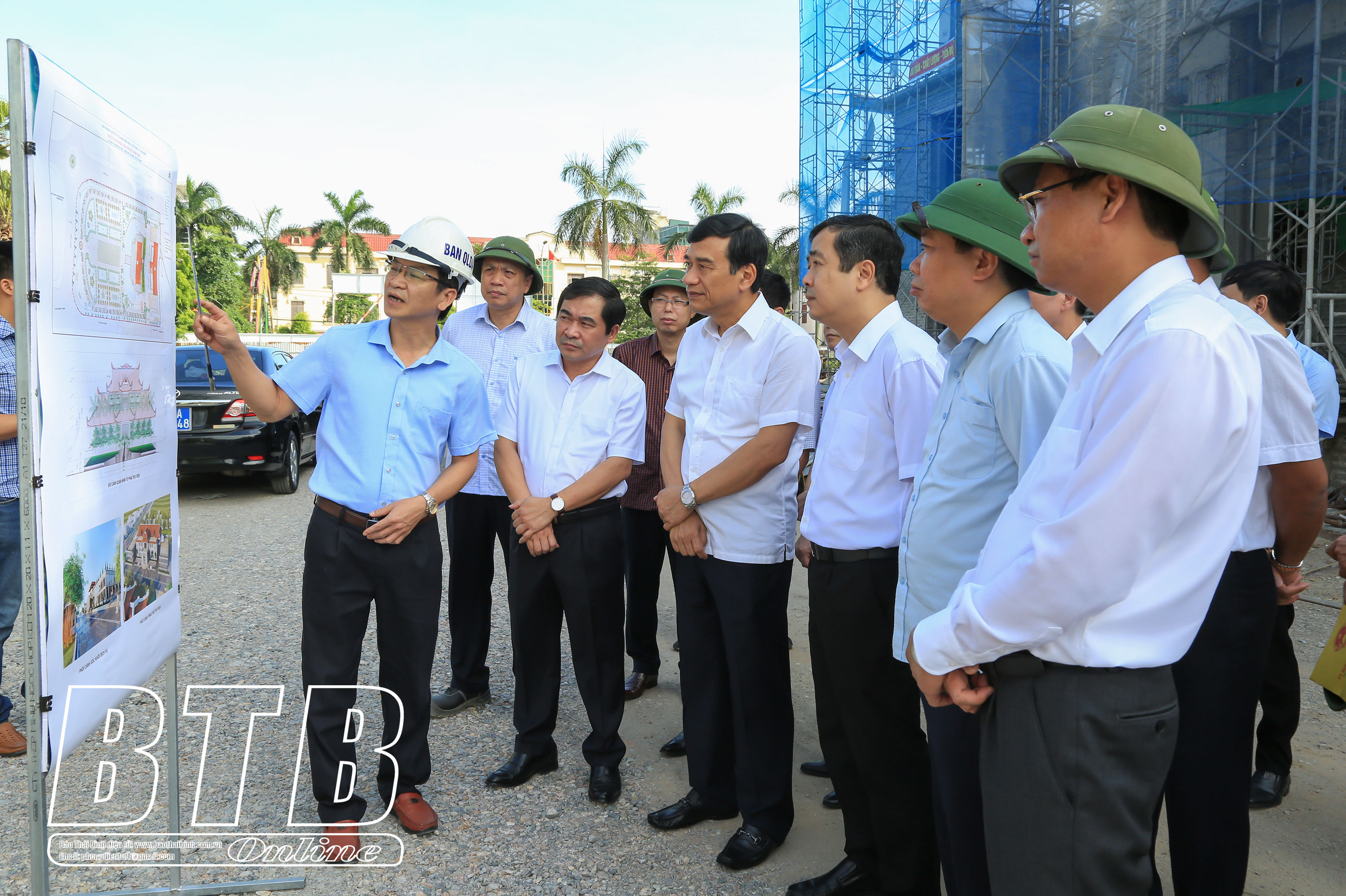 Các đồng chí lãnh đạo tỉnh kiểm tra tiến độ thi công Thư viện tỉnh, ngày 1/6/2020.