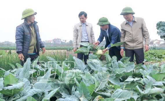 Các đồng chí lãnh đạo huyện Kiến Xương kiểm tra sản xuất vụ đông năm 2020.