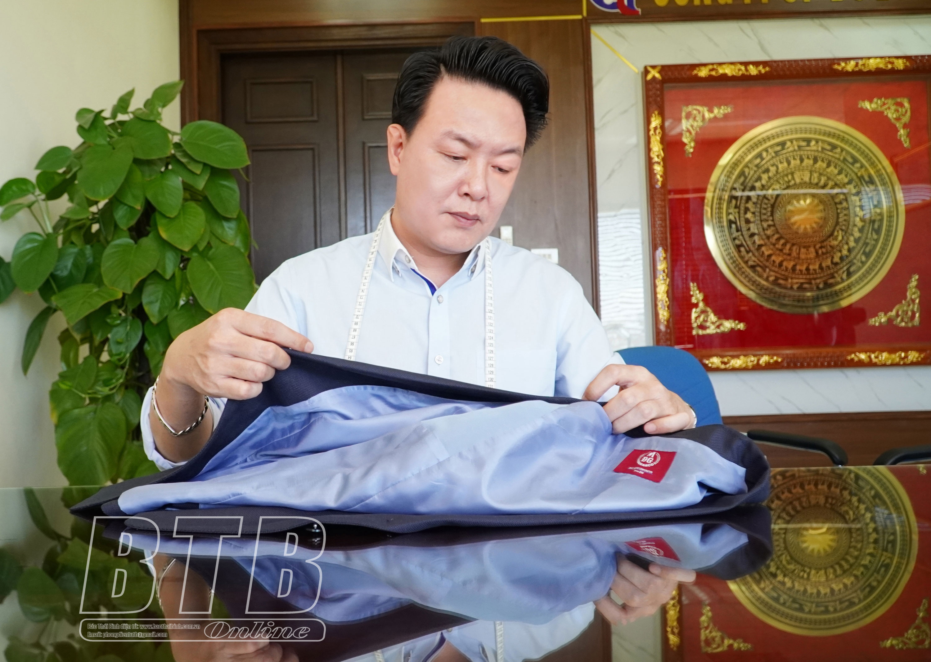 CEO Ninh Xuân Thảo nghiên cứu thiết kế mẫu áo mới phục vụ xuất khẩu vào thị trường châu Âu.