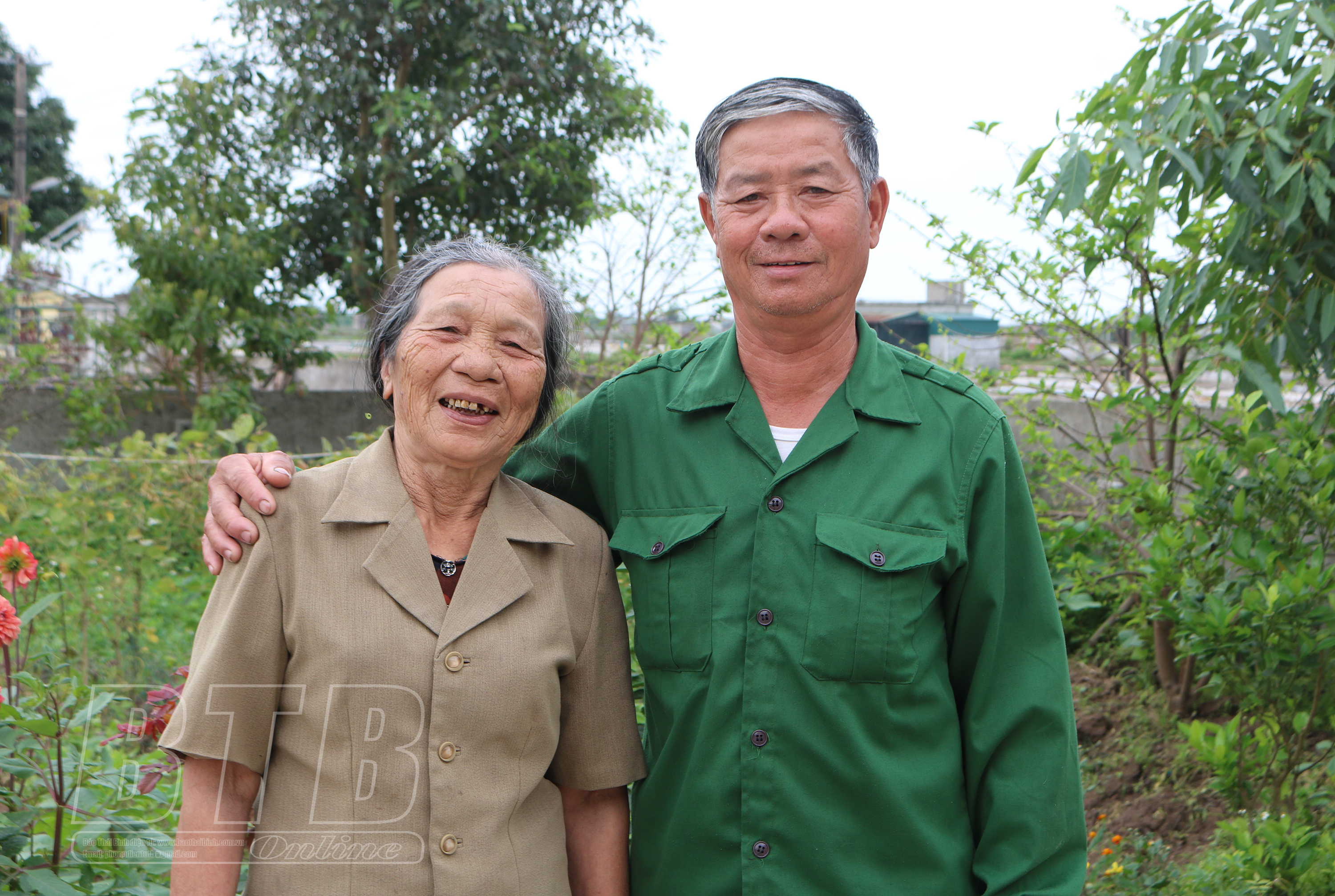 Vợ chồng ông Phạm Văn Thản và bà Vũ Thị Mùi, lão dân quân xã Đông Minh (Tiền Hải).