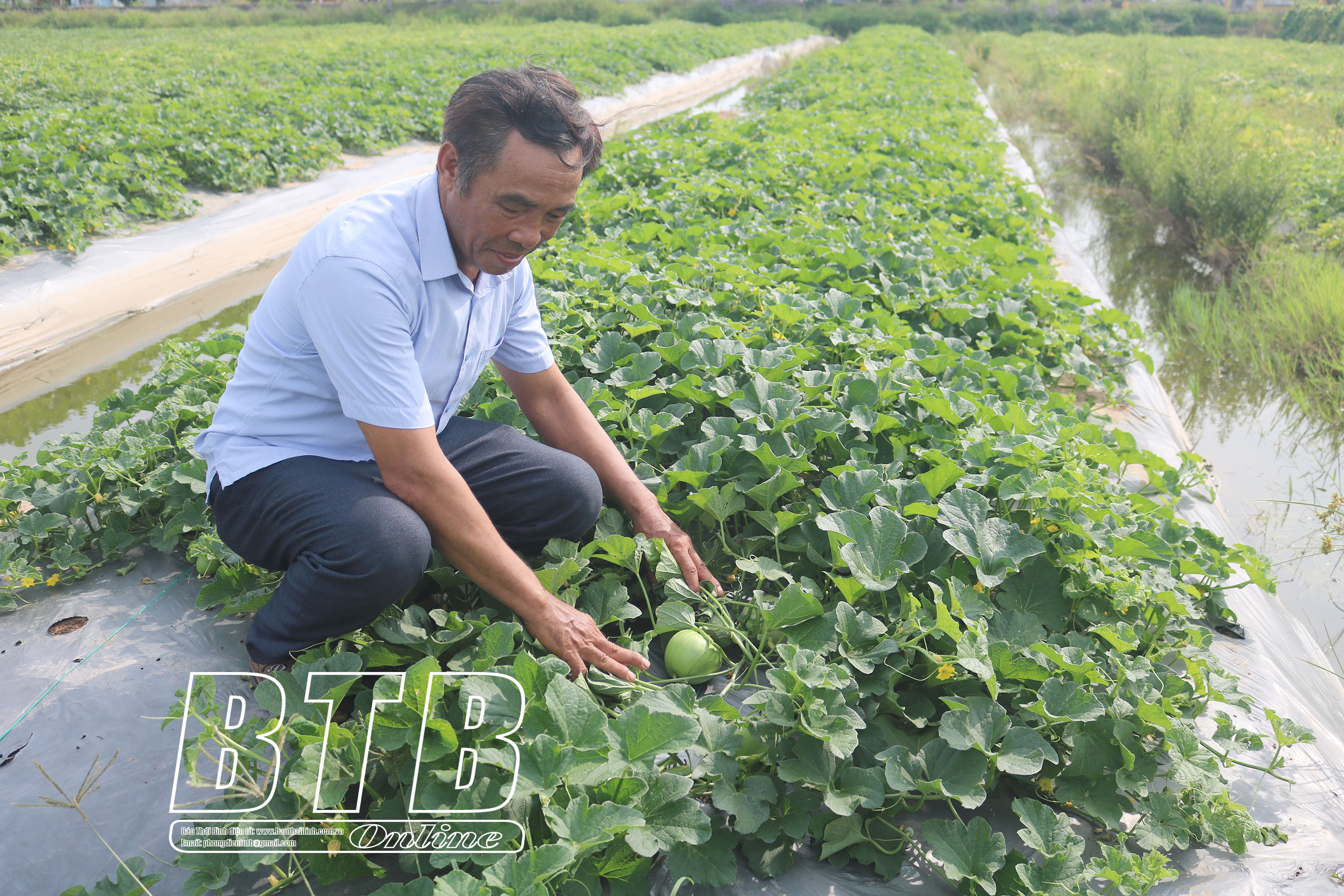 Cựu chiến binh Đoàn Văn Hùng tích tụ 2 mẫu ruộng trồng dưa lê, dưa hấu và bán cho doanh nghiệp.