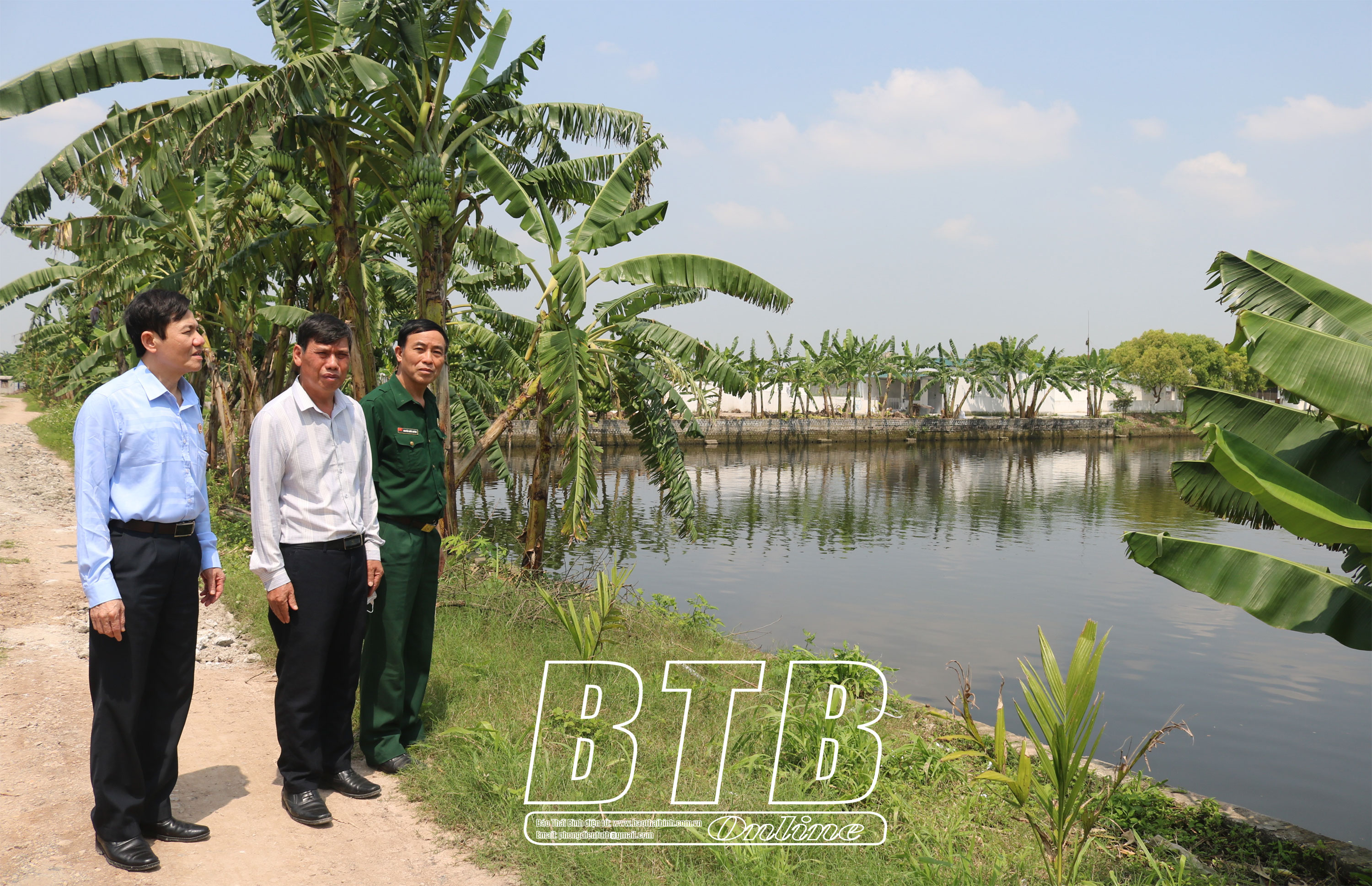 Mô hình chăn nuôi tổng hợp của cựu chiến binh Phạm Văn Luân (đứng giữa), xã Quỳnh Hội, huyện Quỳnh Phụ cho thu nhập cả tỷ đồng mỗi năm.