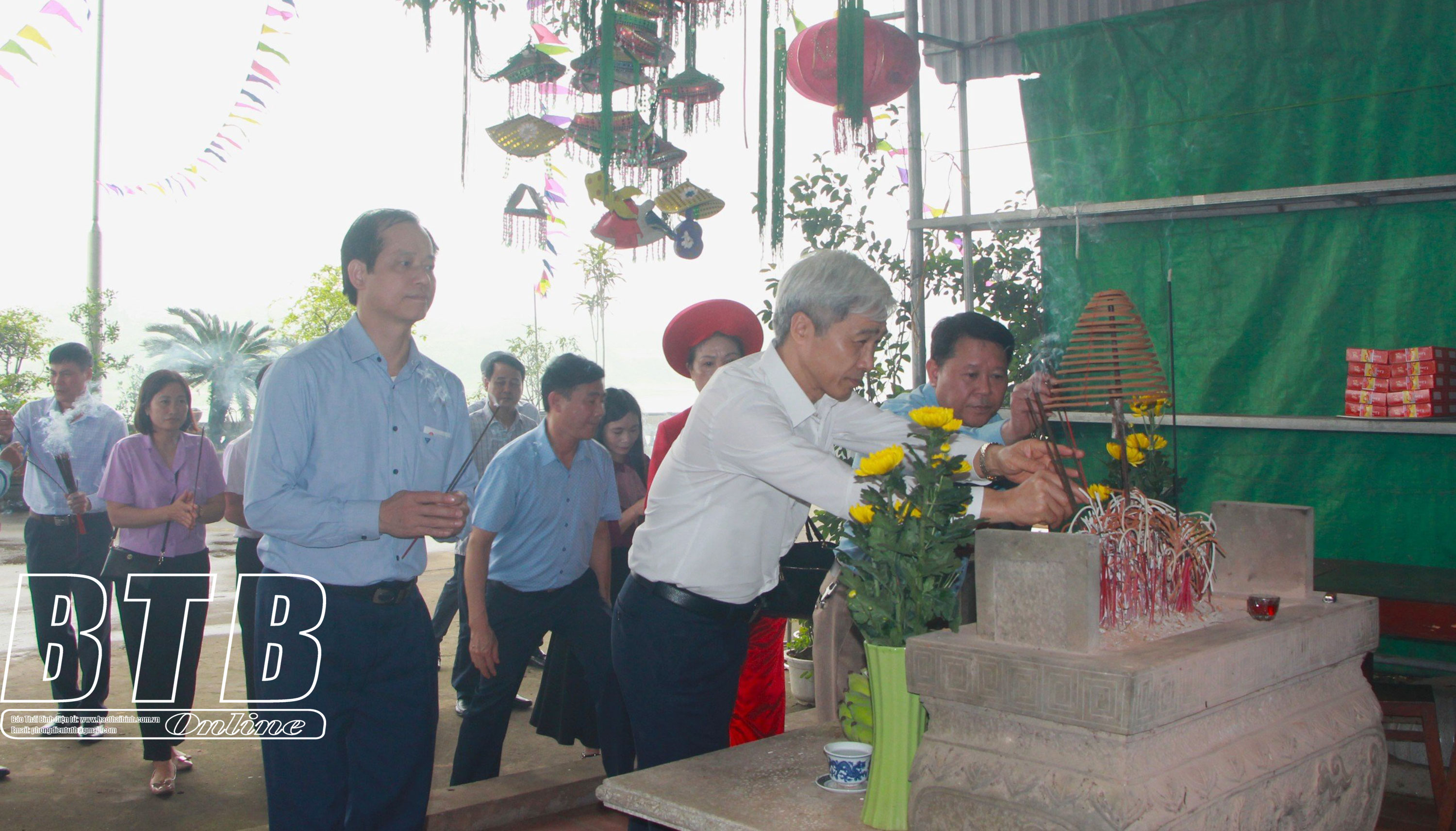 Lãnh đạo huyện Hưng Hà cùng người dân xã Đoan Hùng về tri ân công đức Bát Nàn Đạt tướng quân tại Đền Bát Nàn, xã Phượng Lâu, TP Việt Trì.