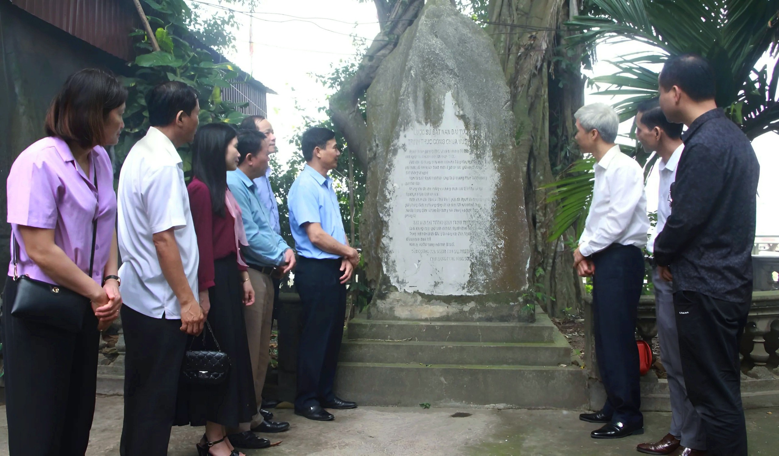 Đoàn đại biểu huyện Hưng Hà tham quan văn bia độc đáo tại tại Đền Bát Nàn, xã Phượng Lâu, TP Việt Trì.