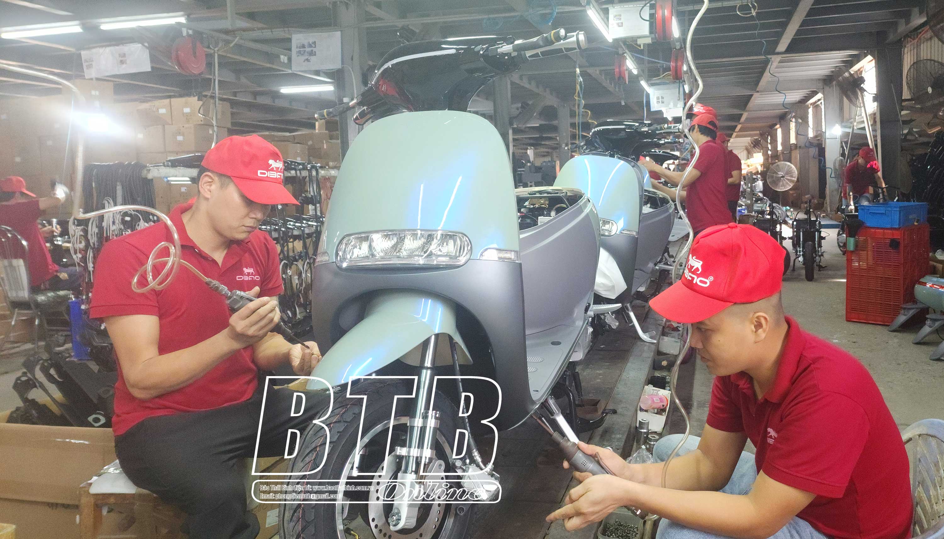 Dây chuyền lắp ráp xe máy điện của Công ty TNHH thương mại Tấn Thành (khu công nghiệp Phúc Khánh, thành phố Thái Bình).