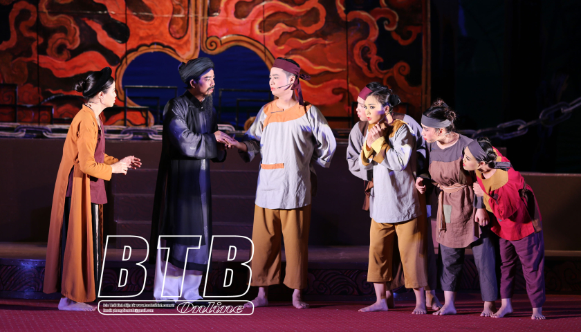Phân cảnh Kỳ Đồng Nguyễn Văn Cẩm bên gia đình ở quê nhà trong vở chèo cùng tên do Nhà hát Chèo Thái Bình dàn dựng