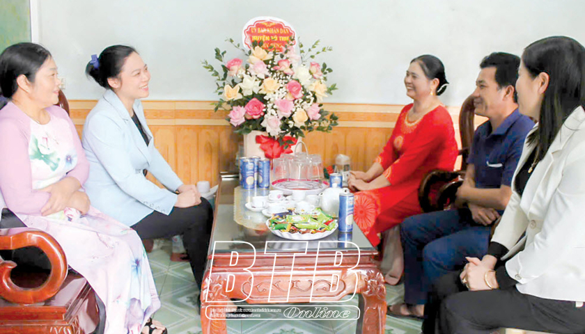 Chủ tịch UBND huyện Vũ Thư Phạm Thị Như Phong thăm, động viên nữ trưởng thôn tiêu biểu tại xã Hồng Lý.