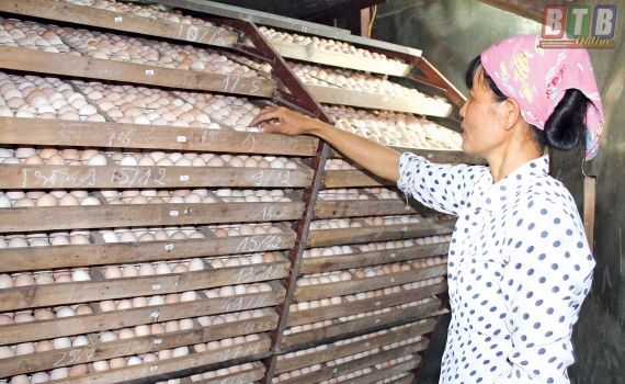 Mô hình nuôi gà đẻ, ấp trứng của gia đình chị Tý cho hiệu quả kinh tế cao.