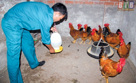 Khi việc nuôi lợn kém hiệu quả, anh chuyển sang nuôi gà ta và gà lai đông tảo. Ngoài ra, trên diện tích gần 1.000m2 của gia đình, anh nuôi thêm vịt, thả cá và cấy hơn 1 mẫu ruộng. Hiện nay, trong chuồng luôn duy trì gần 500 con gà thịt và gà giống, hơn 100 vịt thương phẩm... Mỗi tháng gia đình anh xuất ra thị trường trong huyện hơn 300kg gà thịt. Trừ mọi chi phí, từ chăn nuôi và kinh doanh vật liệu anh có thu nhập trên 130 triệu đồng/năm.