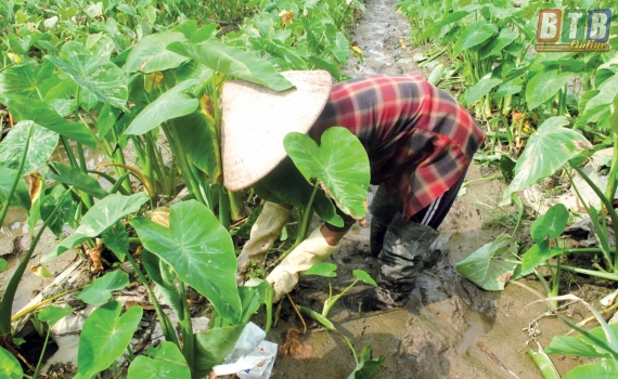 Nói về kỹ thuật chăm sóc cây khoai, ông Riên cho biết: Cây khoai trồng một lần có thể lấy bồng trong thời gian từ 8 - 12 tháng, sau đó trồng lại bằng chính cây con từ cây giống ban đầu đẻ ra do vậy hạn chế rất nhiều chi phí cho người trồng. So với các loại cây khác, khoai dễ trồng, cách thức chăm sóc cũng đơn giản, tuy nhiên cần lưu ý cây khoai lấy bồng phát triển tốt, cho năng suất cao ở vùng đất phù hợp nhất cho loại cây này là có nước ra vào thường xuyên. Trồng lúa gặp mưa lớn lo ngập úng nhưng trồng khoai bồng thì có ngập cũng không sao, không sợ bão gió, không phải đầu tư nhiều vốn lại dễ tiêu thụ, thu nhập cao gấp nhiều lần cấy lúa. Thu hoạch bồng khoai cũng nhẹ nhàng, không phải gấp gáp như thu hoạch lúa nên gia đình neo người vẫn làm được. Bồng thu hoạch đến đâu được tiêu thụ hết đến đó, nhiều thời điểm không đủ bồng để bán nên tôi mong muốn mô hình này của mình được nhân rộng, khi đó tôi sẽ giúp người dân tiêu thụ sản phẩm.