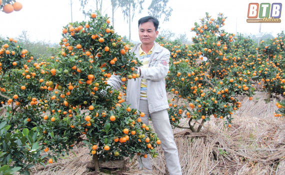 Chăm sóc đúng cách, tỉ mẩn, cẩn thận trong tạo dáng, tạo thế do vậy, vườn đào của gia đình anh Đại năm nay nhiều nụ, nở đúng độ tết, quất dáng đẹp, quả đẹp có quả chín, quả xanh, lá xanh, lộc non mơn mởn và có nụ.