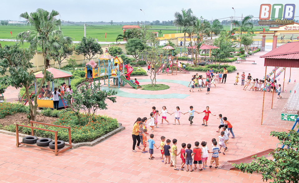 Trước đây với 3 điểm trường ở 3 khu, điều kiện dạy học, sinh hoạt của giáo viên và học sinh rất khó khăn. Nhờ phong trào xây dựng NTM, được sự quan tâm của các cấp ủy đảng, chính quyền, sự đồng thuận đóng góp của đông đảo nhân dân, năm 2012, Trường Mầm non xã Quỳnh Bảo bắt đầu được xây dựng. Hiện nay, hệ thống phòng học, cơ sở vật chất đã khang trang, bề thế với quy mô 10 nhóm lớp, 260 cháu. Do thực hiện tốt công tác xã hội hóa, nhiều trang thiết bị, đồ dùng dạy học tại các phòng chức năng được đưa vào giảng dạy. Từ năm học 2013 - 2014 đến nay, nhà trường luôn đạt và giữ vững danh hiệu đơn vị lao động tiên tiến xuất sắc, đã được Bộ Giáo dục và Đào tạo tặng bằng khen. Phát huy truyền thống quê hương NTM anh hùng và những thành tích đã đạt được, mỗi cán bộ, giáo viên nhà trường nguyện phấn đấu thi đua dạy tốt, công tác tốt góp phần giữ vững và củng cố các giá trị NTM.
