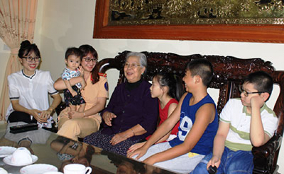 Vào những ngày cuối tuần, gia đình các con, cháu, chắt lại quây quần bên bà Đào Thị Hải (vợ liệt sỹ) ở tổ 7, phường Đoàn Kết, thành phố Lai Châu.