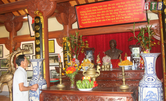 Dẫn chúng tôi đi thăm Khu tưởng niệm, ông Hoàng Xuân Phương, Trưởng tộc Chi họ Hoàng làng An Khang, người trông coi Khu tưởng niệm Đại tướng Hoàng Văn Thái cho biết: Khu tưởng niệm được xây dựng trên khu đất trên 2.000 m2 tại chính mảnh đất mà của gia đình Đại tướng Hoàng Văn Thái. Sau 2 năm xây dựng, năm 2012 công trình hoàn thành và đưa vào sử dụng. Khu tưởng niệm đang trưng bày hơn 300 tư liệu, hiện vật liên quan đến cuộc đời, sự nghiệp của Đại tướng Hoàng Văn Thái. 7 năm qua, được sự quan tâm của cấp ủy, chính quyền địa phương, chúng tôi là con cháu của Đại tướng đã ra sức sưu tầm thêm hiện vật, quản lý và phát huy giá trị lịch sử của di tích cũng như đón các đoàn khách trong và ngoài tỉnh đến thăm viếng. Hiện nay, trong khuôn viên của Khu tưởng niệm vẫn còn cây mít cổ trên 100 tuổi.