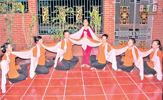 Bà Phạm Thị Tiến (áo đỏ) luyện tập cùng các thành viên câu lạc bộ.