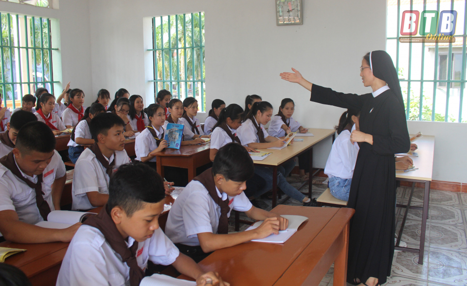 Lớp học kỹ năng miễn phí cho nhiều lứa tuổi nhằm hướng các em tới lý tưởng sống tốt đẹp tại Đền xứ Bác Trạch, xã Vân Trường, huyện Tiền Hải.