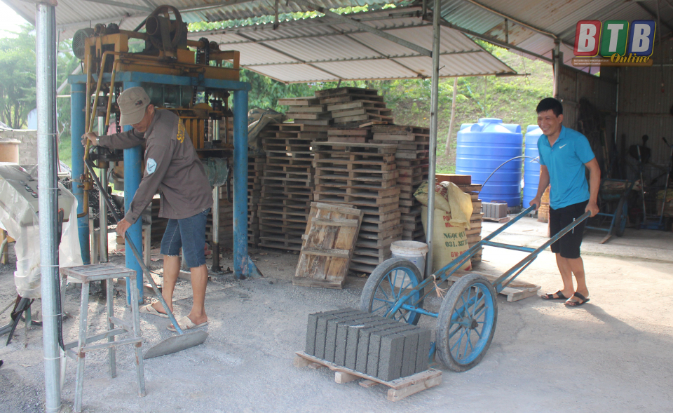 Chùa Long Hưng, xã Nam Hưng, huyện Tiền Hải đầu tư máy sản xuất gạch không nung hỗ trợ gạch xây nhà đại đoàn kết cho nhiều hộ nghèo.