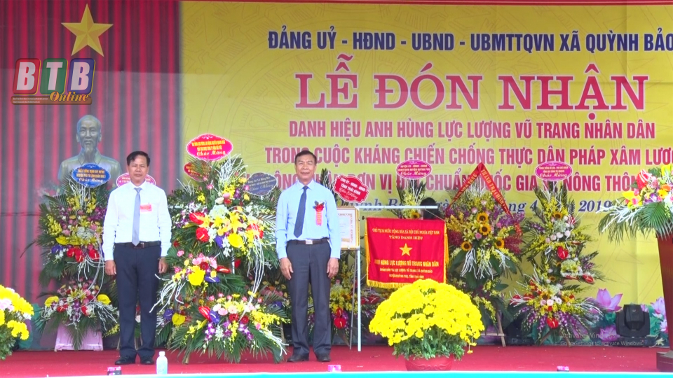 Anh hùng Lao động Nguyễn Quang Mâu tại lễ đón nhận danh hiệu xã đạt chuẩn nông thôn mới của xã Quỳnh Bảo (Quỳnh Phụ).
