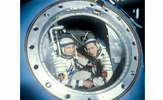 Anh hùng Phạm Tuân và Anh hùng Liên Xô Viktor Gorbatko trên tàu vũ trụ “Soyuz-37”. Ảnh tư liệu