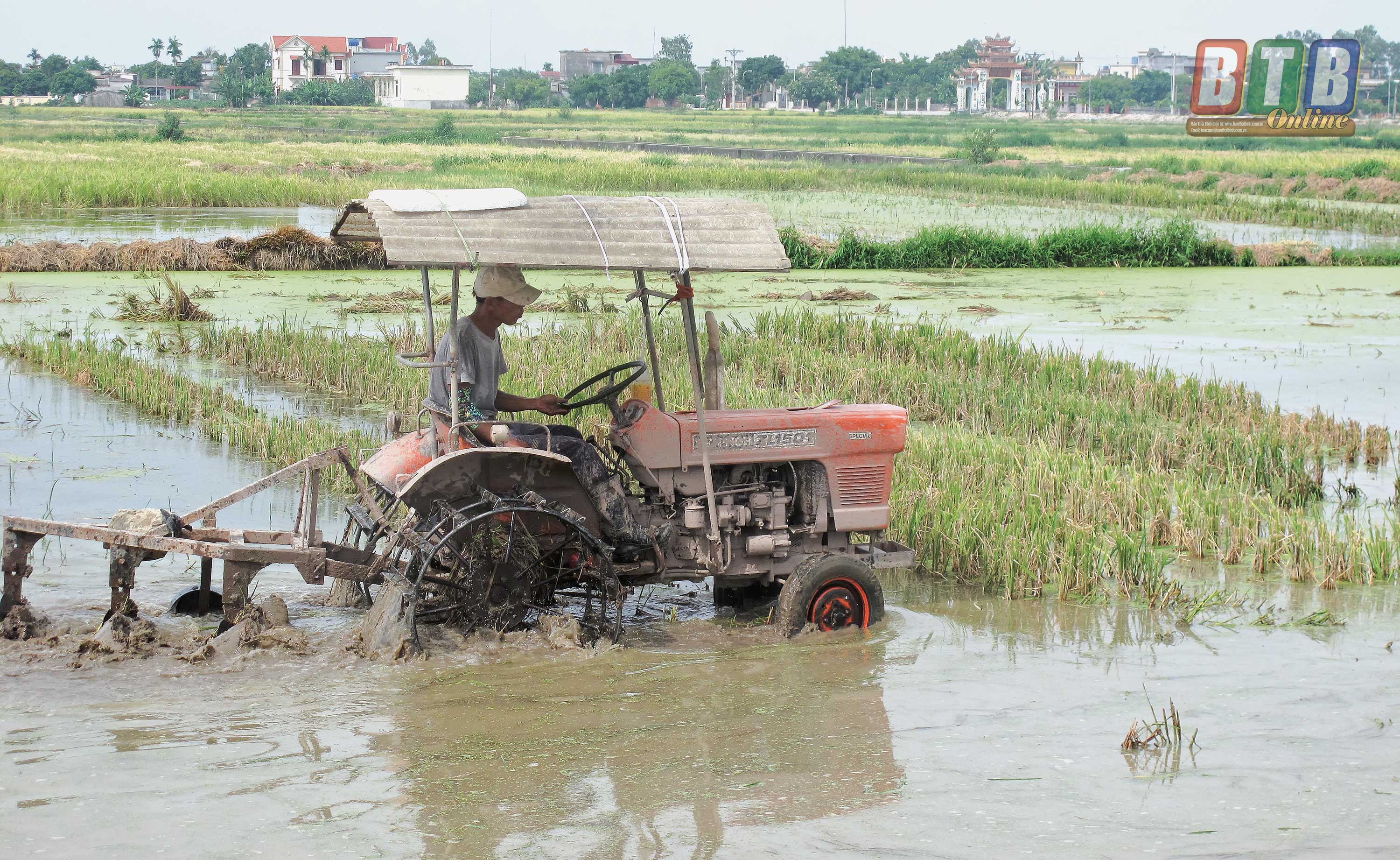 Nông dân huyện Hưng Hà làm đất chuẩn bị gieo cấy vụ mùa.