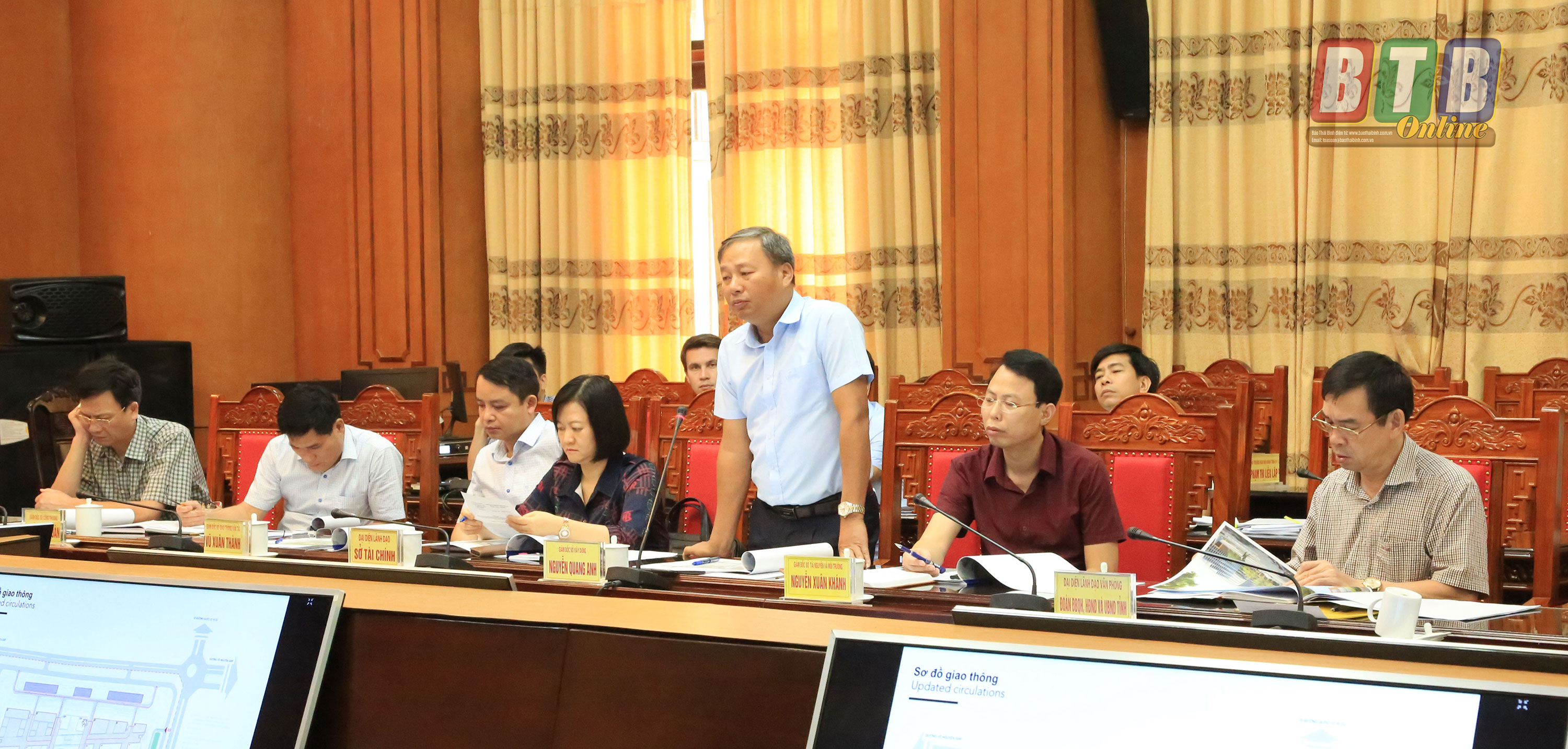 Tại cuộc họp, Ban Quản lý dự án đầu tư xây dựng các công trình dân dụng và công nghiệp tỉnh, đơn vị tư vấn báo cáo phương án thiết kế quy hoạch chi tiết tỷ lệ 1/500 khu cơ quan hành chính tỉnh Thái Bình tại phường Hoàng Diệu, thành phố Thái Bình. Theo đó, hướng chính của khu quy hoạch nhìn ra phía sông Trà Lý. Về cổng chính và lối vào, tư vấn đã bố trí 2 cổng chính, cổng thứ nhất dành cho Tỉnh uỷ và các cơ quan Đảng, cổng thứ hai dành cho UBND tỉnh và các sở, ngành chức năng. Đồng thời bố trí 1 lối vào cho người dân tiếp cận từ đường nội bộ phía Đông Bắc khu đất để thuận tiện cho nhân dân đến làm việc tại Trung tâm Phục vụ hành chính công tỉnh và không ảnh hưởng đến các khối nhà trong khu cơ quan hành chính. Về giao thông đã thiết kế 2 trục giao thông chính bảo đảm giao thông thông suốt trong nội khu. Vị trí Trung tâm Phục vụ hành chính công tỉnh được bố trí tại khối đế của toà nhà khối kinh tế.