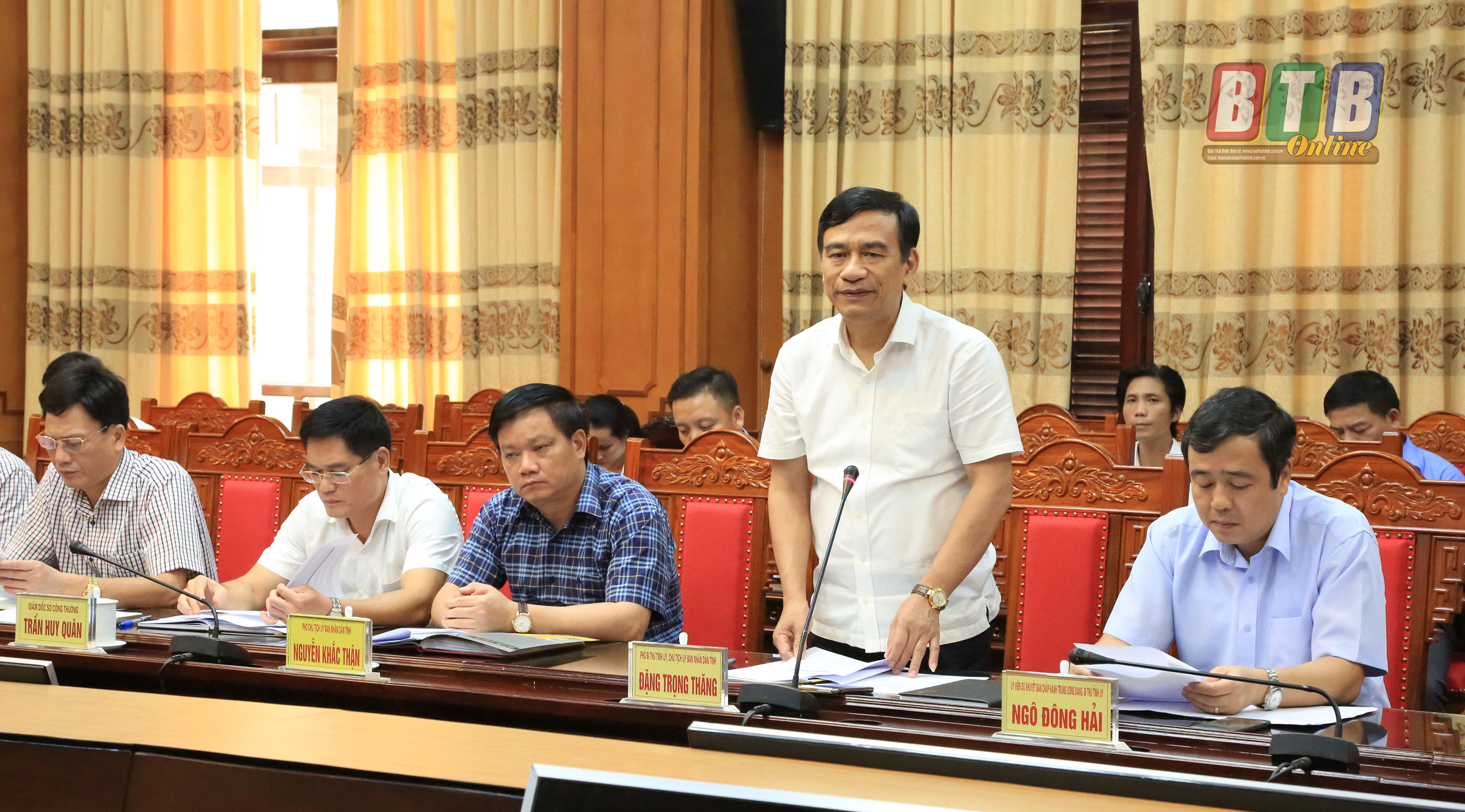 Các đồng chí: Ngô Đông Hải, Ủy viên dự khuyết Trung ương Đảng, Bí thư Tỉnh ủy; Đặng Trọng Thăng, Phó Bí thư Tỉnh ủy, Chủ tịch UBND tỉnh chủ trì buổi làm việc. Dự buổi làm việc có đồng chí Nguyễn Khắc Thận, Tỉnh ủy viên, Phó Chủ tịch UBND tỉnh và đại diện lãnh đạo một số sở, ngành, huyện Tiền Hải, một số doanh nghiệp trong KCN Tiền Hải và lãnh đạo Tổng công ty Khí Việt Nam.