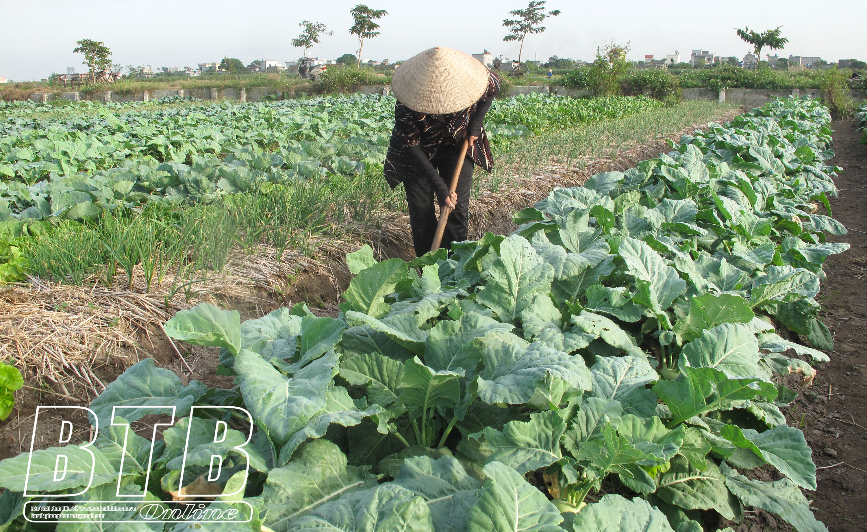 Nông dân huyện Kiến Xương chăm sóc rau vụ đông.