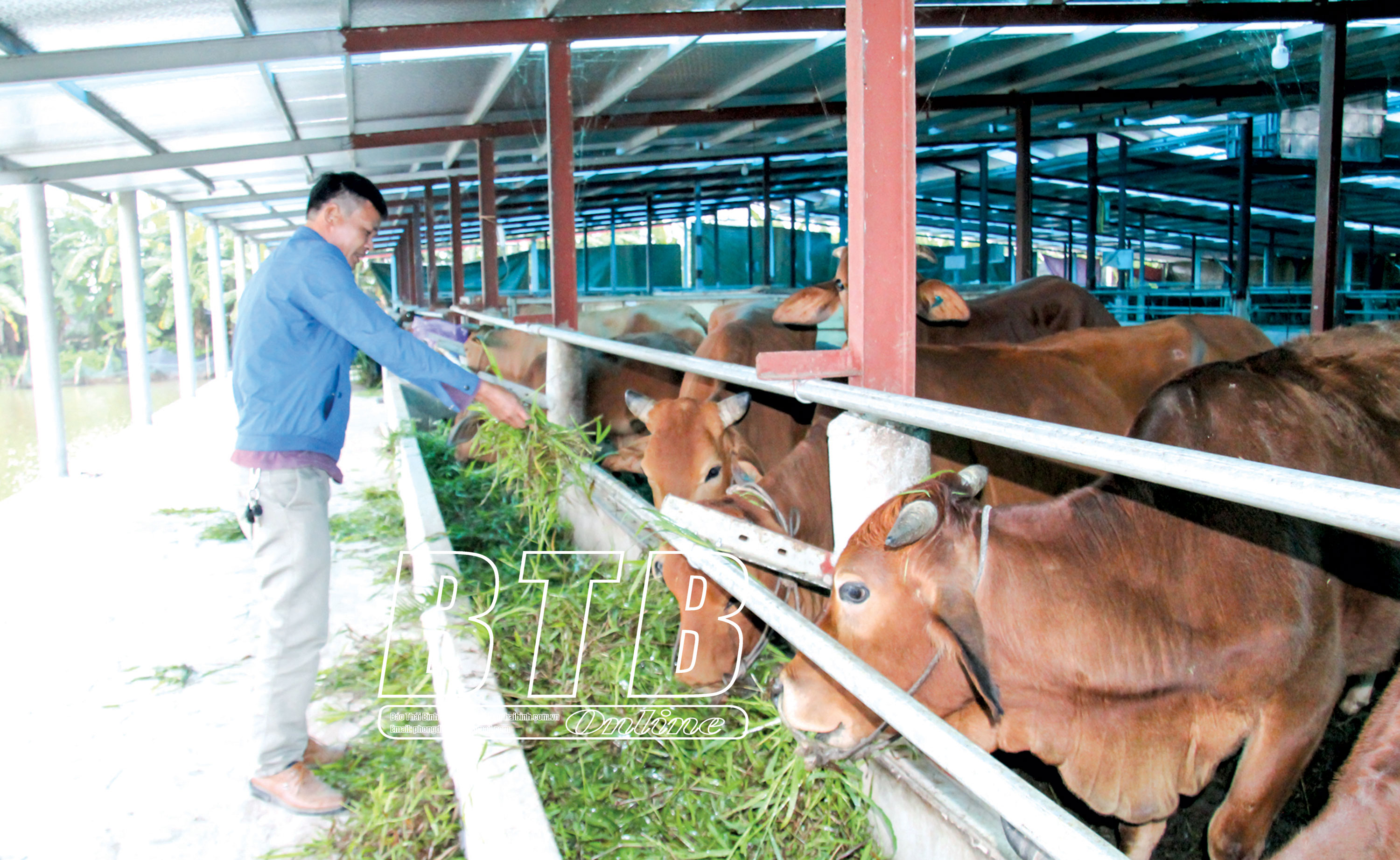 Trang trại nuôi bò thương phẩm của anh Phạm Xuân Khánh, xã Trọng Quan (Đông Hưng).