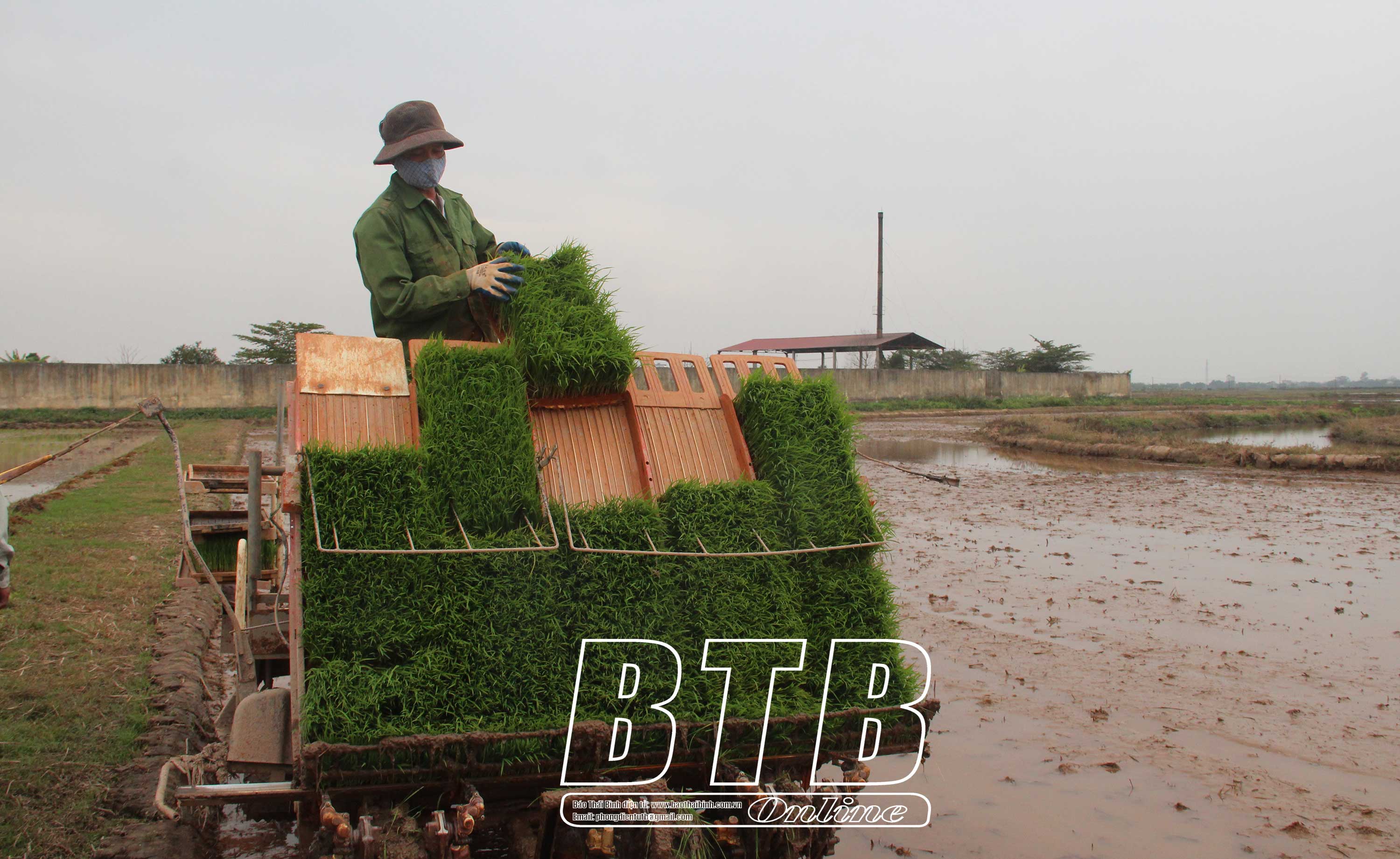 Sáng mùng 3 Tết, nông dân huyện Đông Hưng xuống đồng gieo cấy lúa xuân