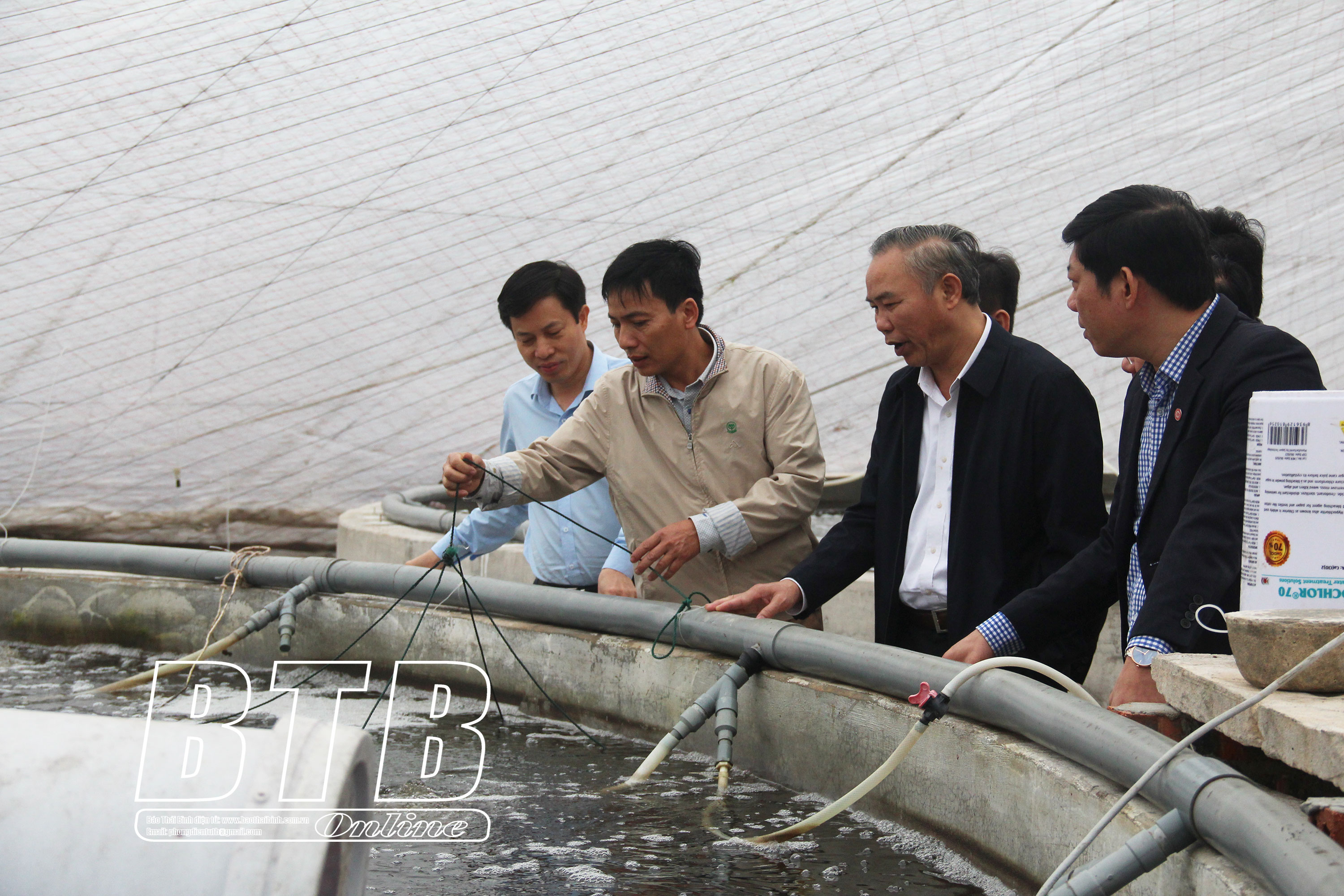 Đoàn công tác thăm mô hình nuôi tôm công nghệ cao của Công ty TNHH Giống thủy sản Phương Nam (Thái Thụy).