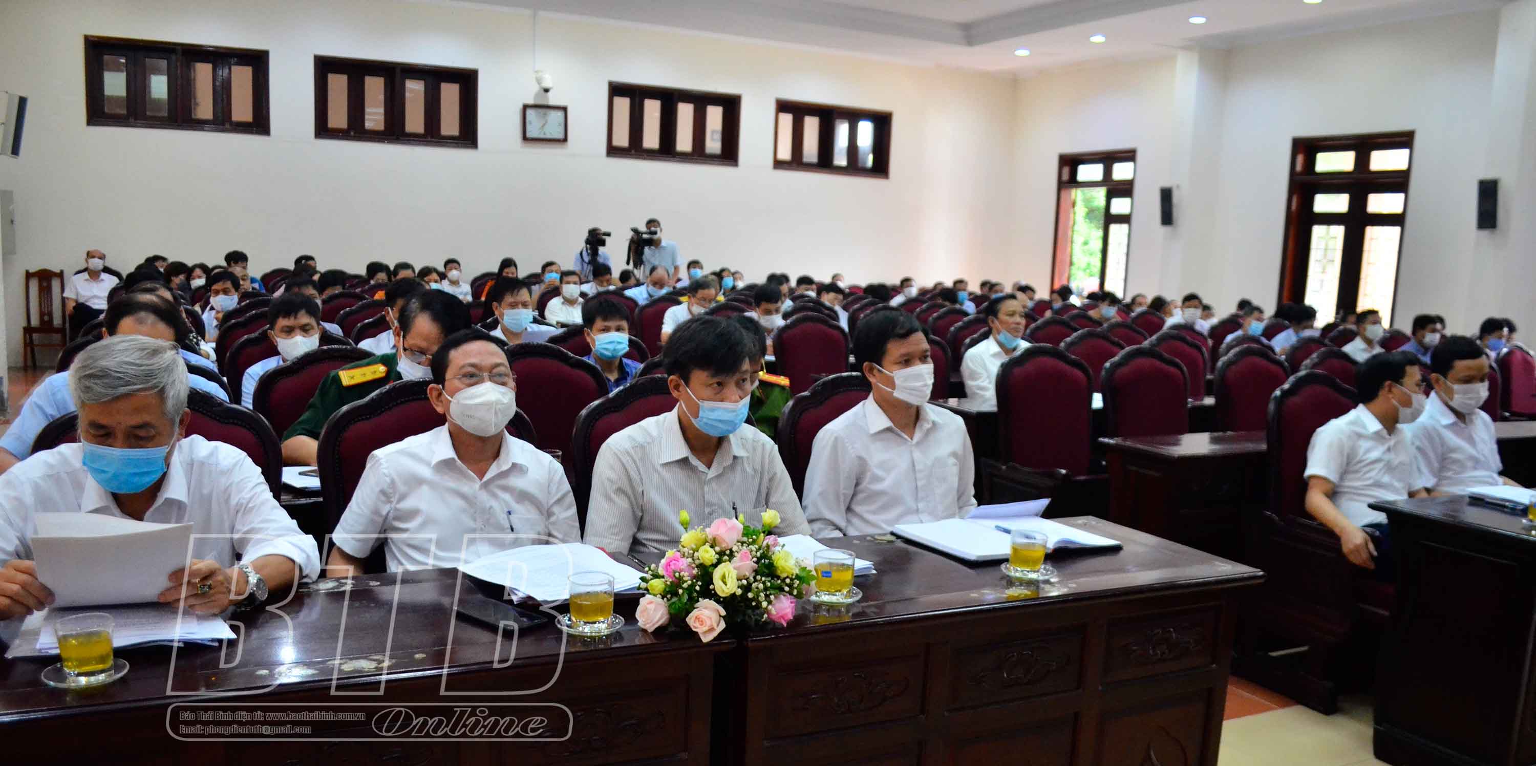 Đồng chí Hoàng Văn Thành, Ủy viên Ban Thường vụ Tỉnh ủy, Bí thư Thành ủy, Chủ tịch HĐND thành phố Thái Bình chủ trì hội nghị.