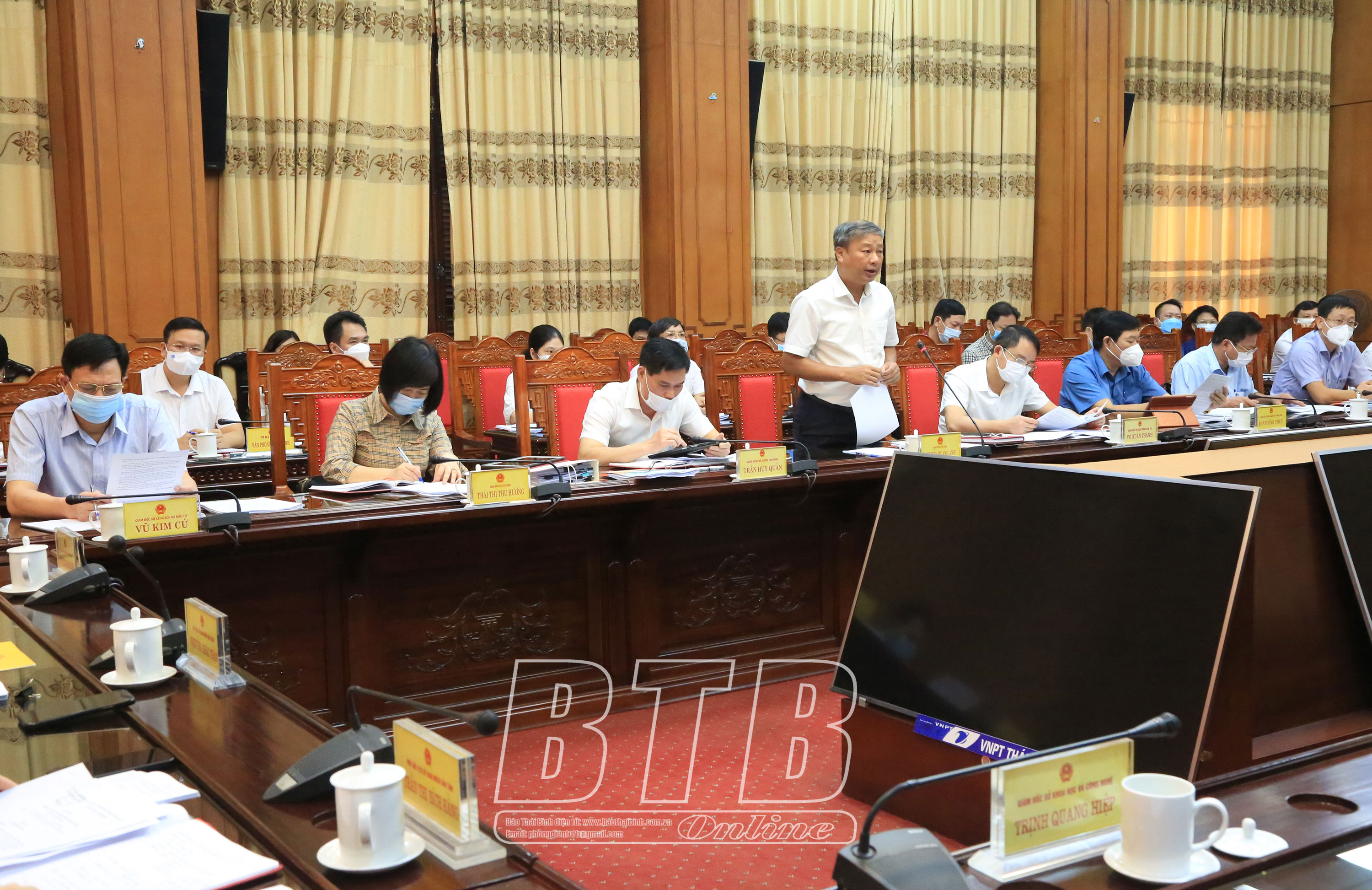 Lãnh đạo Sở Xây dựng báo cáo tại cuộc họp.