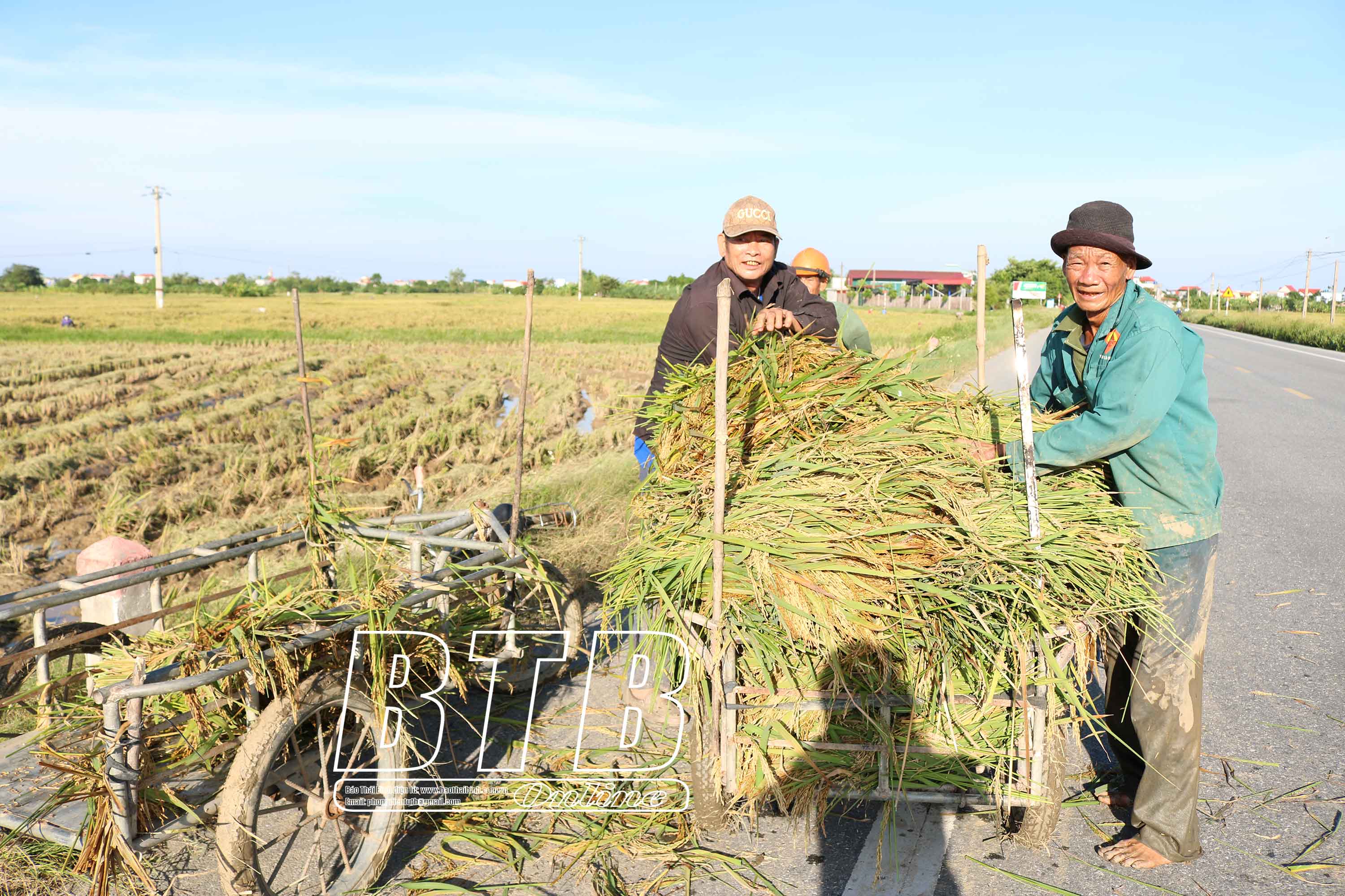 Vụ mùa năm 2021, huyện Kiến Xương gieo cấy trên 11.000ha lúa. Đến nay, toàn huyện đã thu hoạch được trên 4.500ha. Huyện Kiến Xương đã huy động trên 300 máy gặt đập liên hợp để đẩy nhanh tiến độ thu hoạch lúa. Đối với diện tích lúa bị đổ, không gặt máy được, huyện tập trung chỉ đạo các địa phương huy động các lực lượng quân đội, đoàn thanh niên hỗ trợ bà con nông dân thu hoạch lúa cũng như buộc dựng diện tích lúa bị đổ nhưng chưa đến kỳ thu hoạch. Trong 2 ngày 12-13/10, toàn huyện phấn đấu sẽ thu hoạch xong 5.000ha lúa đến kỳ thu hoạch. Đối với huyện Thái Thụy, năm 2021, tổng diện tích gieo cấy lúa mùa toàn huyện đạt 12.850ha. Huyện Thái Thụy đã huy động hơn 200 máy gặt đập liên hợp để đẩy nhanh tiến độ thu hoạch lúa mùa. Tính đến ngày 12/10, toàn huyện đã thu hoạch được hơn 7.000ha/12.850ha lúa mùa, năng suất ước đạt gần 60 tạ/ha.